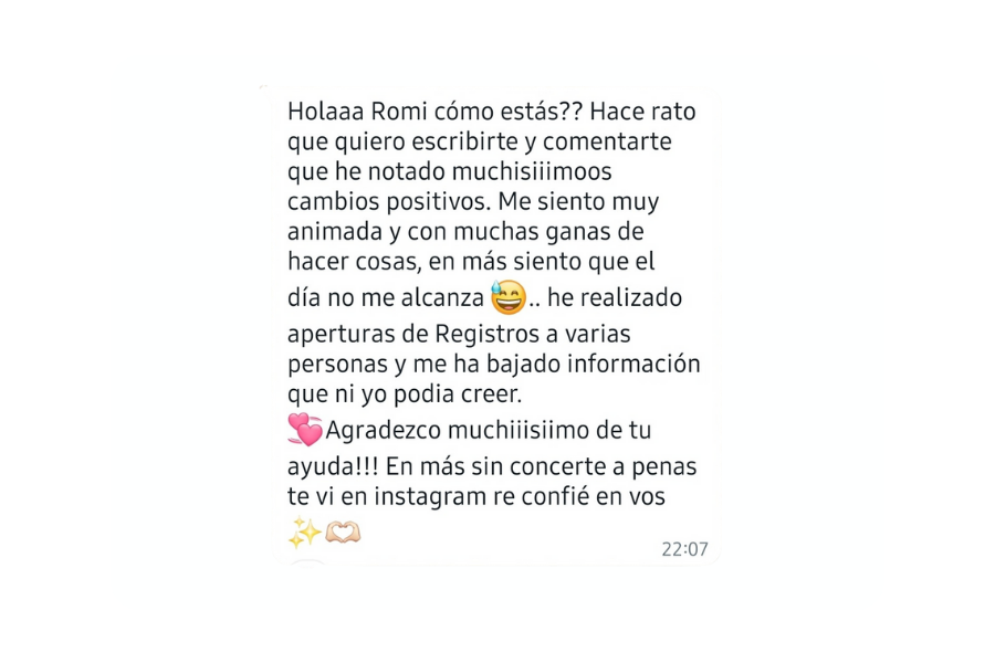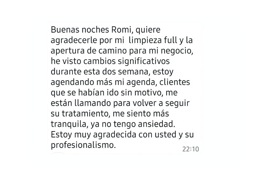 Hoy me dedico 100% a limpiezas energéticas profundas porque vi en mí y en mis consultantes cómo cuando limpiás tu energía, tu realidad cambia.